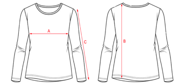 B — общая длина изделия (по спинке)